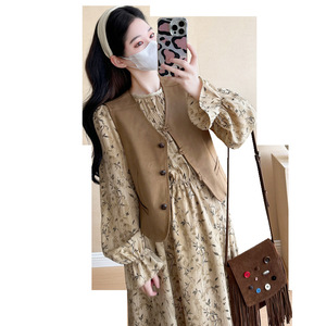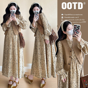 高级感气质温柔碎花连衣裙女春2025新款马甲茶歇裙子孕妇装两件套