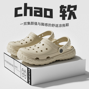 厚底洞洞鞋女款新款外穿春夏季eva增高防滑大码情侣凉拖鞋男
