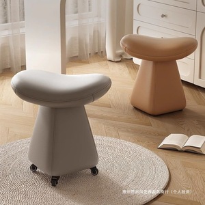 主卧网红梳妆台化妆凳滑轮旋转轻奢高级中古奶油风实木真皮梳妆凳