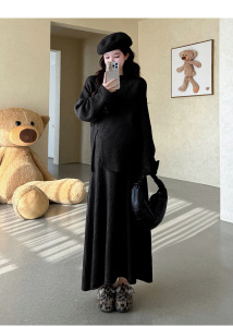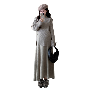 2025秋冬新款简约纯色套头毛衣+半身裙全孕期可打底外穿孕妇套装