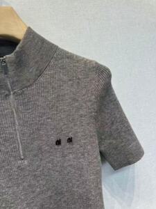 南油女装M家25秋季新款休闲立领半拉链字母刺绣针织衫短袖上衣