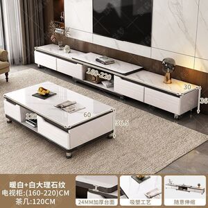 【昇级板材】雪山白大理石色 尺寸:(160-220)+120CM 茶几组合