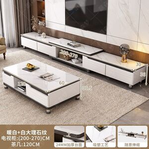 【昇级板材】雪山白大理石色 尺寸:(200-270)+120CM 茶几组合