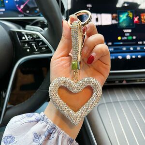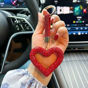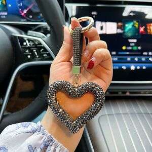 创意镂空陶泥满钻爱心钥匙扣皮绳贴水钻汽车钥匙挂件简单