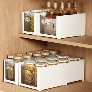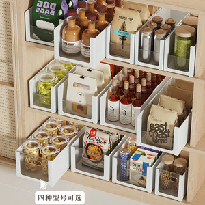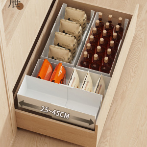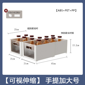 橱柜收纳盒抽屉式可伸缩桌面零食杂物厨房整理盒深柜直角储物盒子