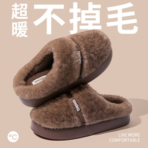 2025冬季家居拖鞋男家用厚底轻盈棉拖鞋简约毛绒棉鞋女室内棉拖鞋