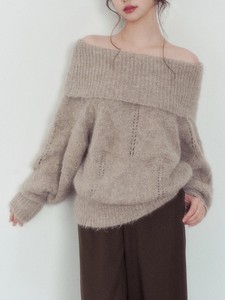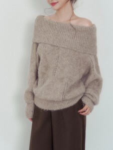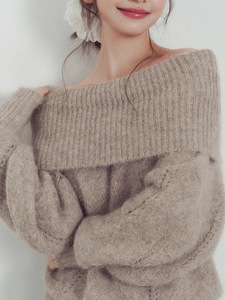 秋日暖栗'氛围感慵懒一字肩马海毛针织厚毛衣上衣
