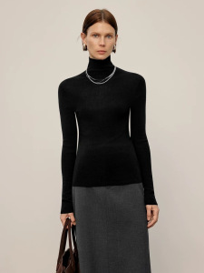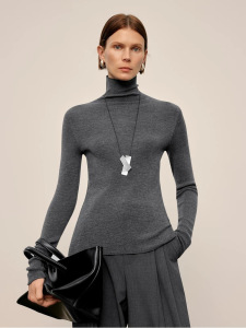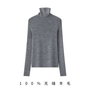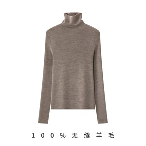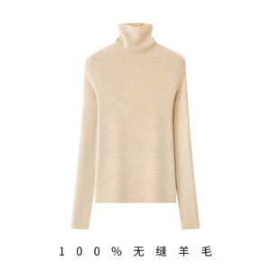 秋冬新款100%精纺羊毛无缝高领针织打底衫内搭套头毛衣修身针织衫