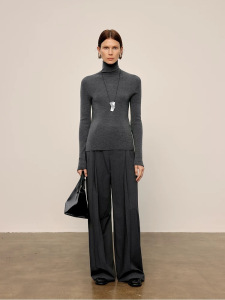 可机洗18针60支堆堆领100羊毛衫女高领内搭无缝针织打底衫毛衣女