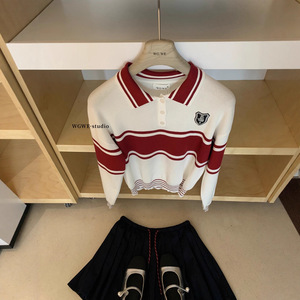 【WGWE】POLO领长袖T恤设计感宽松显瘦百搭上衣针织衫W6935#