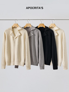 APO女装 |跨境秋季针织衫女无性别宽松V领翻领慵懒风毛衣内搭上衣