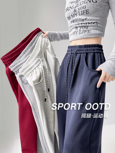2025秋冬新款休闲裤阔腿运动裤高腰显瘦百搭运动长裤一件代发