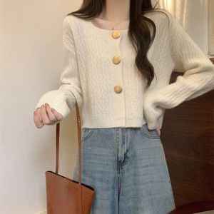 麻花毛衣外套女2025春秋新款宽松慵懒风复古短款长袖针织开衫上衣