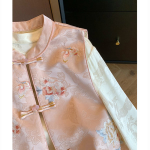 粉色新中式刺绣提花马甲套装女2025春夏季新款国风气质衬衫两件套