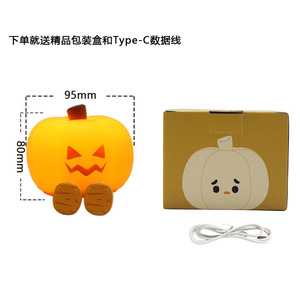 卡通硅胶南瓜小夜灯万圣节床头氛围灯柔光护眼伴睡拍拍灯节日礼物