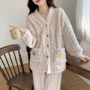秋冬新款舒棉绒加厚开衫睡衣家居服女甜蜜蜜小花朵暖暖套装居家服