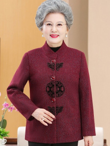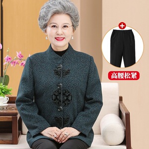 奶奶春秋唐装外套中老年人女妈妈装秋冬加绒老人太太衣服立领宽松