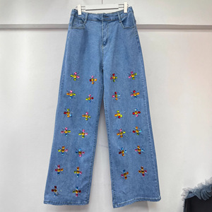 2025新款重工轻奢手工镶彩钻牛仔裤女设计师减龄街头显瘦时尚长裤