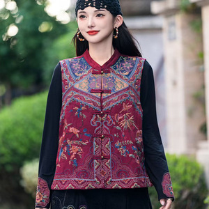 2025秋季新款重工刺绣马甲民族风复古盘扣民族风立领无袖百搭坎肩