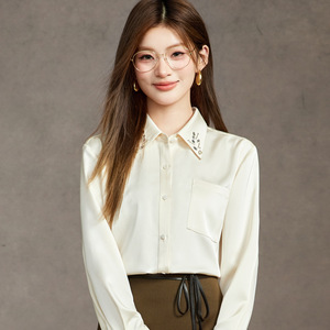 2025秋季新款翻领钉钻长袖雪纺衫女上衣宽松女衬衣2199