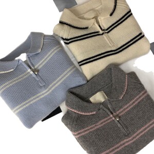 条纹Polo领半拉链软糯毛衣女秋冬新款慵懒风高级感宽松显瘦厚实上