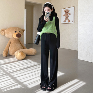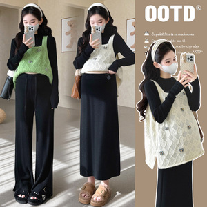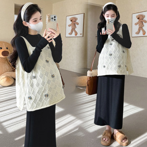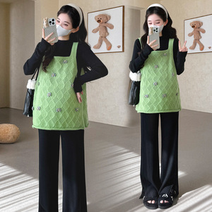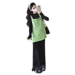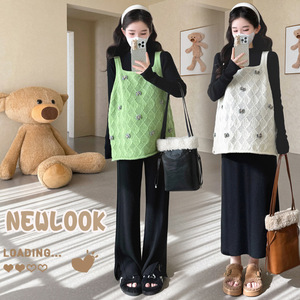 2025秋冬新孕妇毛衣吊带马甲半高领打底针织裤半裙三件套