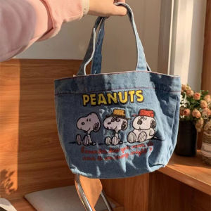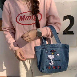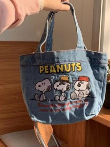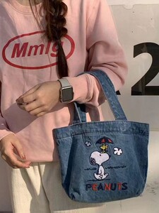 新款日系动漫卡通刺绣牛仔大容量手提包包学生女便当包便携手提袋