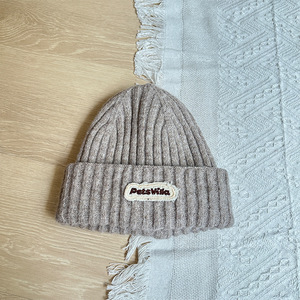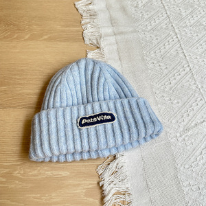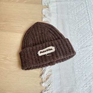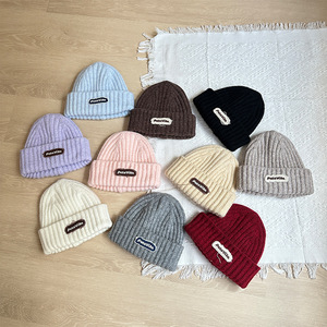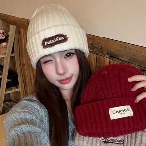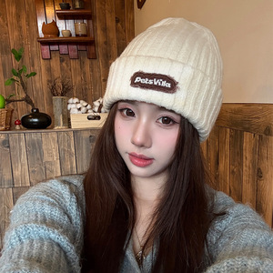 韩版时尚字母布标针织帽显脸小甜美毛线帽秋冬百搭保暖冷帽护耳帽