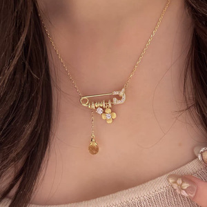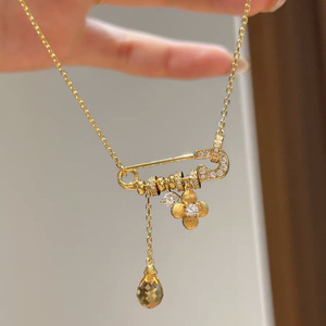 法式精致轻奢四叶草吊坠项链女小众别针设计感项链独特简约锁骨链