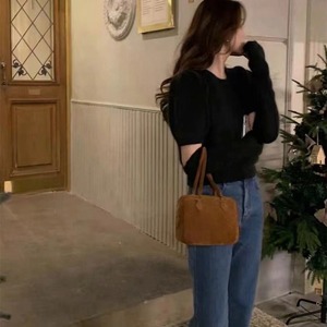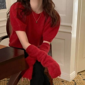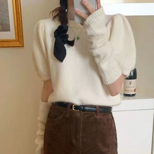 2025秋季上新韩版可拆卸袖套毛衣女圆领短款休闲慵懒风泡泡袖上衣