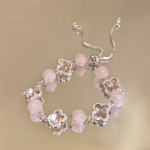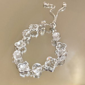水晶精致四叶花抽拉手链女轻奢高级感气质手环手串叠戴配饰手饰-