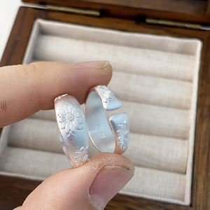 银佳银饰 足银999.9 古法牡丹戒指 时尚潮流 精品现货一件代发