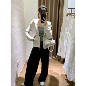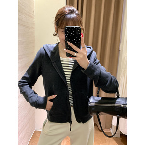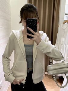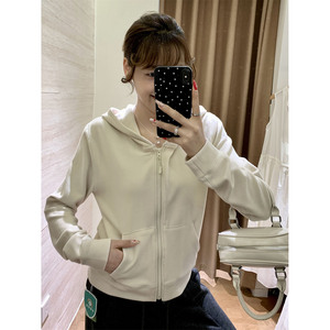 炒显瘦!!运动风秋季双面磨毛绒舒适连帽短款拉绒纯色卫衣外套女
