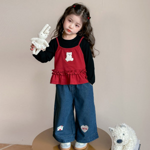 套装女童秋装超好看宝宝2025新款洋气儿童吊带假两件套小女孩衣服