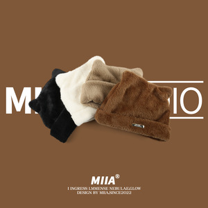 韩国新款可爱猫耳朵仿貂毛针织帽冷帽毛线帽子女时尚百搭包头帽潮