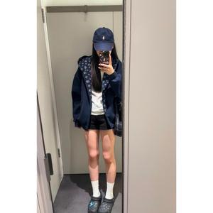 休闲学院慵懒风春秋新款男女松弛感卫衣刺绣连帽开衫短外套