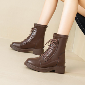 真皮短靴马丁靴女2025年新款时尚百搭秋冬季加绒内增高英伦风靴子