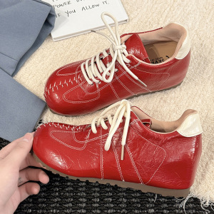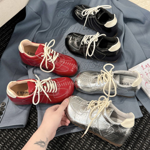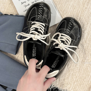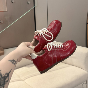时尚百搭休闲鞋内增高运动单鞋秋季复古设计感厚底系带浅口德训鞋