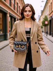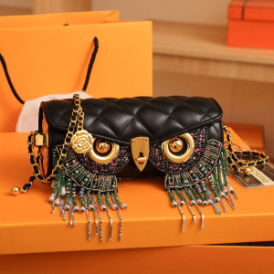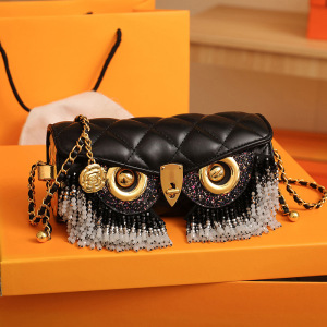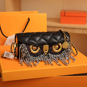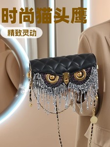 2025猫头鹰流苏包新款轻奢水钻女包高级感小众百搭单肩斜跨小包女
