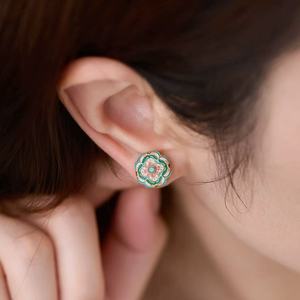 新中式中国风松青花笺耳钉精致轻奢小众独特高级优雅气质耳饰女