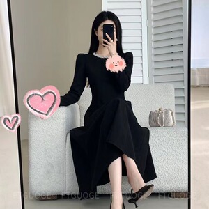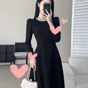 大码女装黑色连衣裙女2025秋冬新款茶歇法式显瘦赫本风长裙
