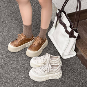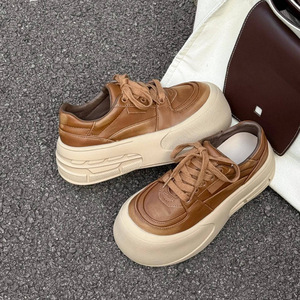 跨境真皮百搭厚底丑萌小白鞋女新款小个子增高休闲大头板鞋面包鞋
