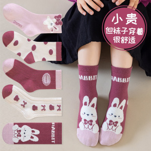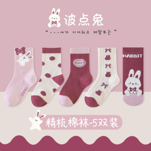 儿童袜子波点兔卡通秋季新款可爱女童棉袜中筒袜无骨宝宝袜