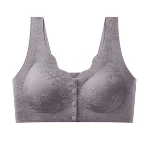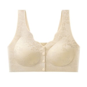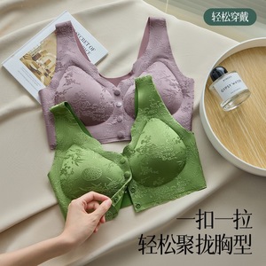 中国风浮雕提花蕾丝文胸聚拢无痕美背内衣中老年前开扣大码背心女