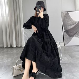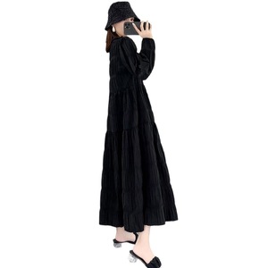 胖mm300斤大码女装秋季长袖连衣裙女宽松显瘦赫本风黑色裙中长款2