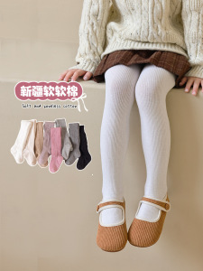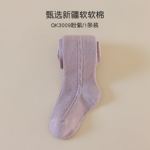 包邮纯色麻花纹女童打底裤2025秋冬新款糖果色儿童连裤袜一件代发