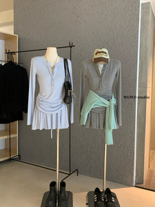 WGWE秋季简约慵懒风百搭防晒长袖T恤+短款半身裙两件套装女W6911