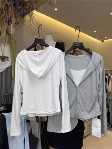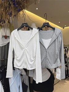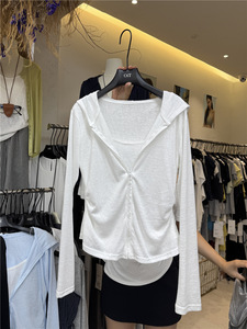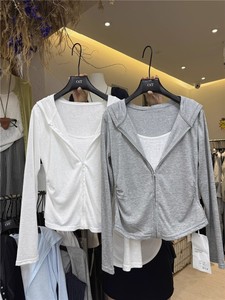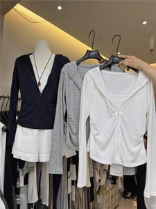 韩国东大门夏季新款卡通印花薄款长袖T恤女宽松防晒斜领露肩上衣