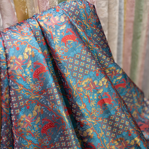 飞鸟小鹿服装布料面料提花色织复古风中国风汉服锦缎人丝仿蜀锦