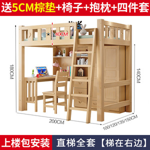 原木无漆 梯柜单床【梯在右边】无椅子